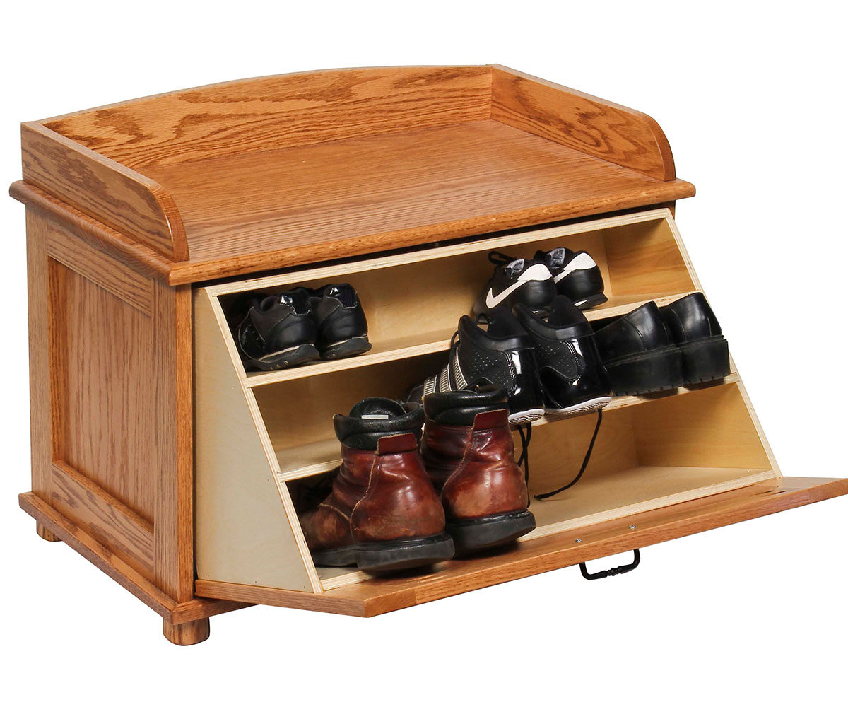 • Flip out front reveals shoe storage