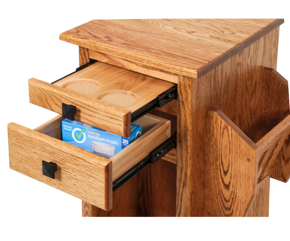 • Tilt out trash bin